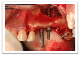 A set of surgical techniques aiming at the functional rehabilitation of a patient affected by total or partial edentulism. By using dental implants, i.e. metal elements surgically inserted in the mandibular or maxillary bone, or above them but under the gum. These elements are fitted with connectors to fasten them to fixed or removable prostheses to enable chewing functionality. Such implants can have different shapes, they can be inserted in different positions with different techniques then connected to prostheses at different times.